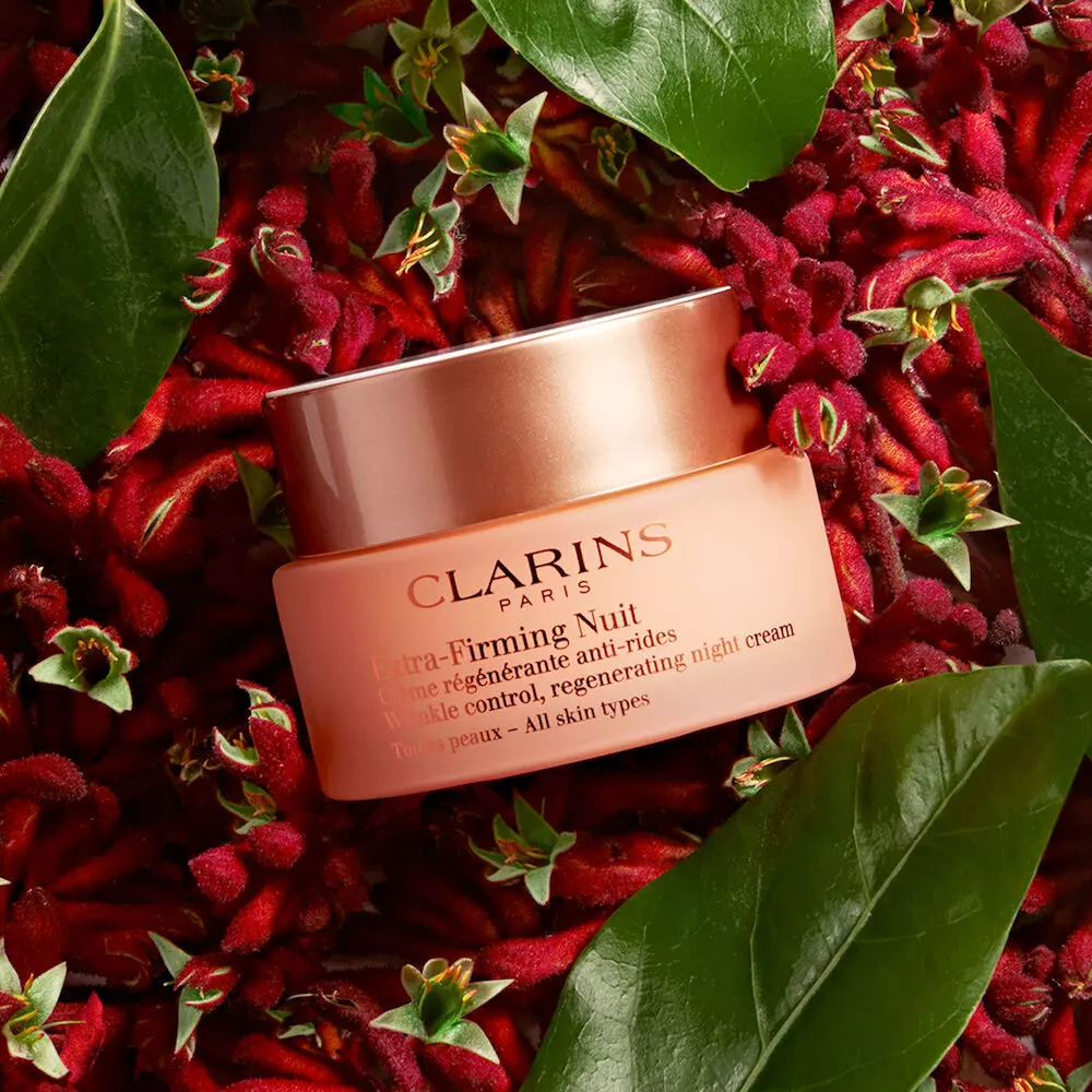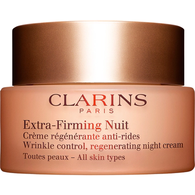 Extra-Firming Nuit är en nattkräm som passar alla hudtyper och riktar sig särskilt till kvinnor i 40-årsåldern. Den hjälper till att göra huden fastare, slätare och mer motståndskraftig medan du sover. Formulan innehåller extrakt av kängurublomma och mitracarpus som förbättrar hudens elasticitet och motverkar slapphet. Silica från månsten återfuktar och stärker huden, medan desert date-extrakt jämnar ut hudtonen. Clarins Anti-Föroreningskomplex skyddar huden mot yttre påfrestningar och bidrar till en fräschare hud vid uppvaknandet.