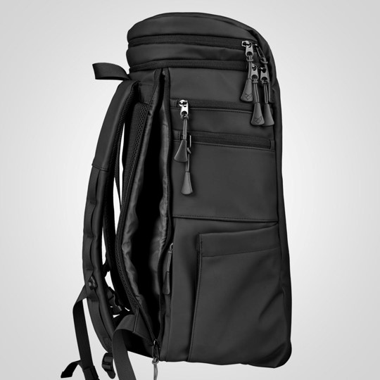 Invändigt finns det två flyttbara avdelare så att du kan organisera innehållet precis som du vill. Sidoöppningen ger optimal åtkomst och översikt av innehållet i väskan. Ryggsäcken går även att öppna uppifrån som på en vanlig ryggsäck. Det finns även ett separat vadderat datorfack som skyddar laptops upp till 18 tum. Dessutom finns en sidoficka för din vattenflaska.