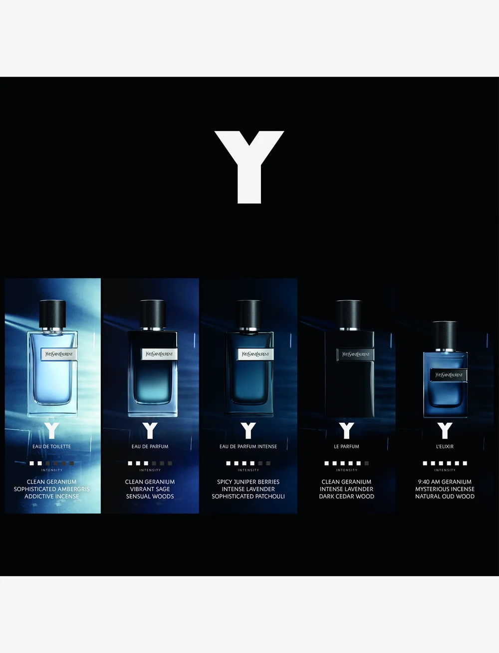 Y L’Elixir är en intensiv, träig och kryddig doft för den sofistikerade och självsäkra mannen. Doften är framtagen av mästerparfymören Dominique Ropion och innehåller noggrant utvalda ingredienser som diva-lavendel från Provence, geranium från Marocko och rökelse samt naturligt oud. Denna elixirversion har den högsta koncentrationen av Y och ger ett kraftfullt intryck med sin djupa, mystiska karaktär. Flaskan har en lyxig metallisk blå design som fångar ljuset i eleganta skiftningar. En perfekt doft för dig som vill utstråla styrka, elegans och personlighet.